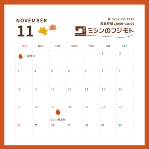 11月カレンダー 営業日